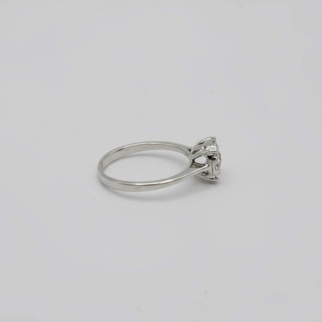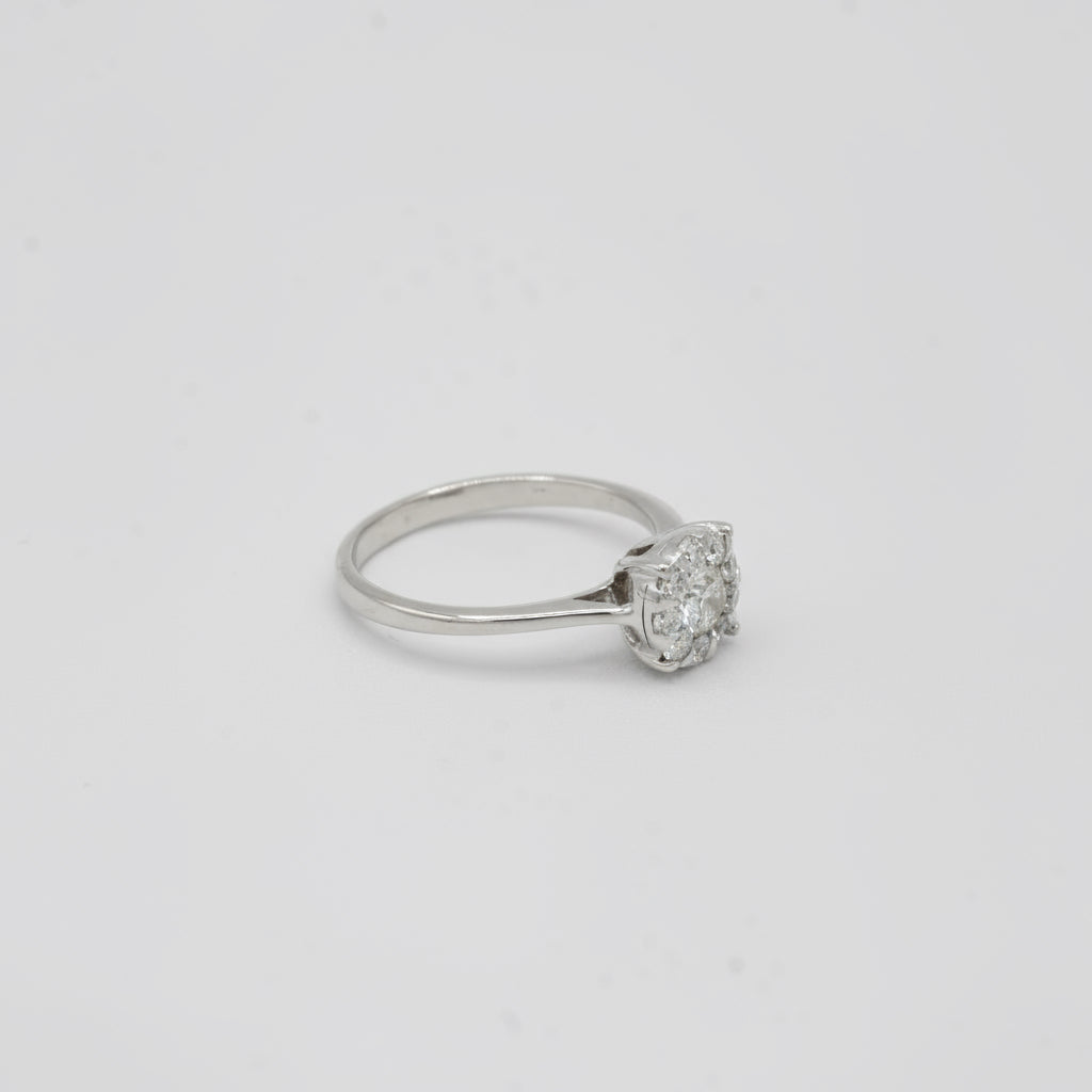 Bague en or blanc 18 carats sertie de d’un diamant central et d’un entourage de 9 petits diamants